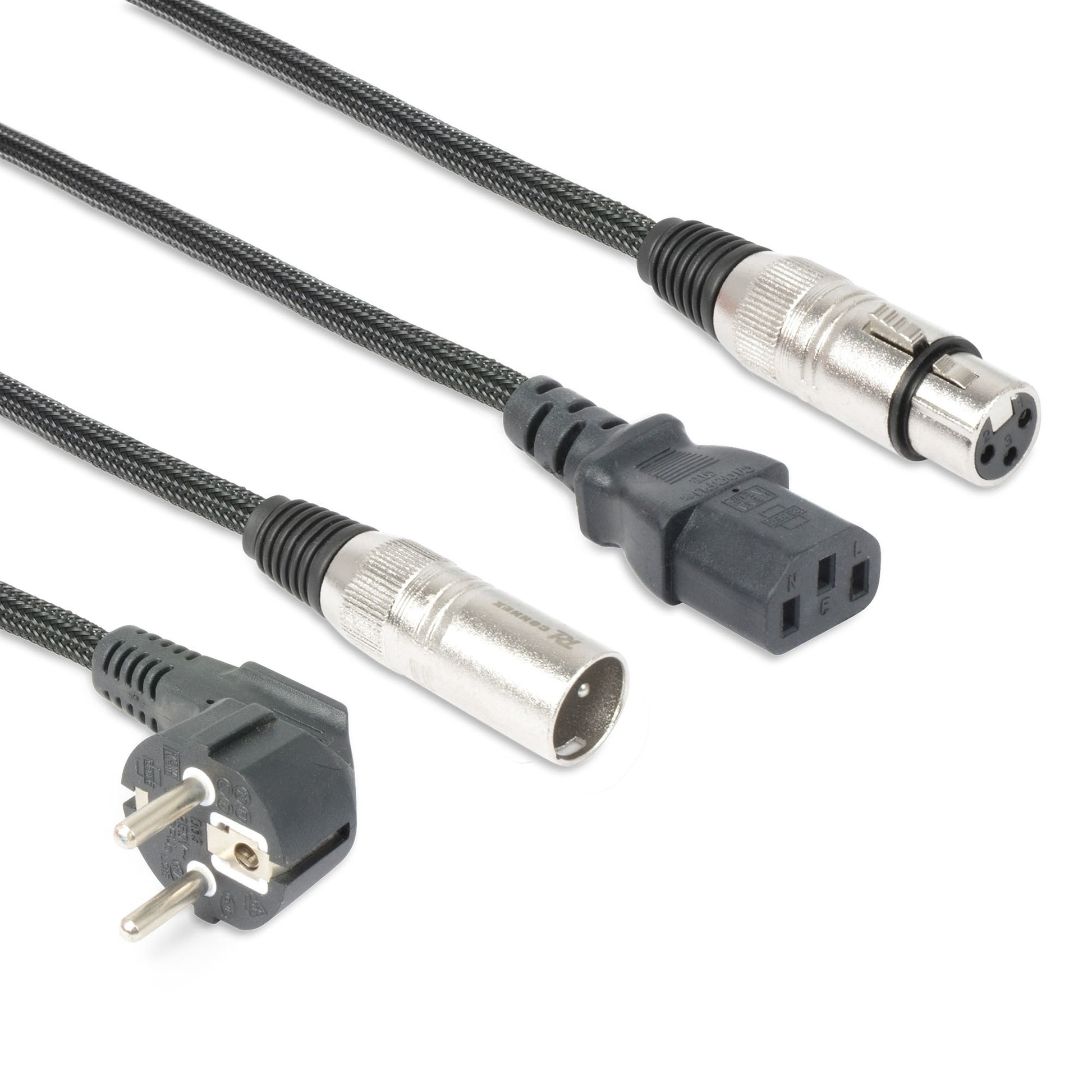 Voeding en signaal gecombineerd in één kabel. De Schuko en XLR plug aan het ene uiteinde en een IEC en XLR plug aan het andere uiteinde van de kabel zorgen ervoor dat o.a. LED-effecten, moving heads en wall washers eenvoudig en snel aangesloten kunnen worden.