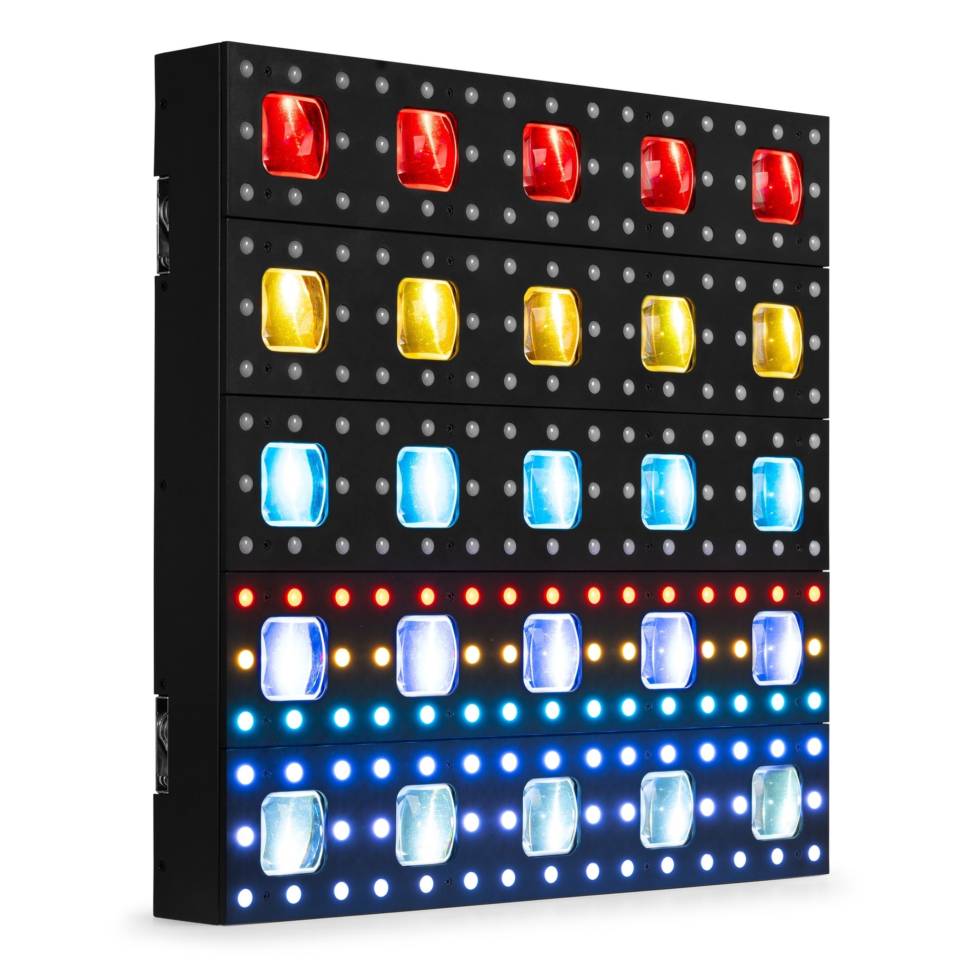 De LCBP450 is een indrukwekkend hybride LED-paneel, uitgerust met 25 krachtige 10W RGBW LED's achter precisie-lenzen en 200 RGB SMD LED's voor een verbluffend backlight-effect. Dankzij de aanpasbare patronen en dynamische chase-effecten creëert deze fixture een visueel spektakel voor elk evenement. In standalone modus kan er gekozen worden uit voorgeprogrammeerde shows die automatisch draaien of reageren op geluid. Daarnaast biedt de RGB-modus de mogelijkheid om uw eigen kleurencombinaties voor achtergrondverlichting samen te stellen. Met de ingebouwde voedingsconnector-uitgang kunnen meerdere units eenvoudig in serie worden geschakeld, wat de installatie vereenvoudigt en kabelbeheer optimaliseert.